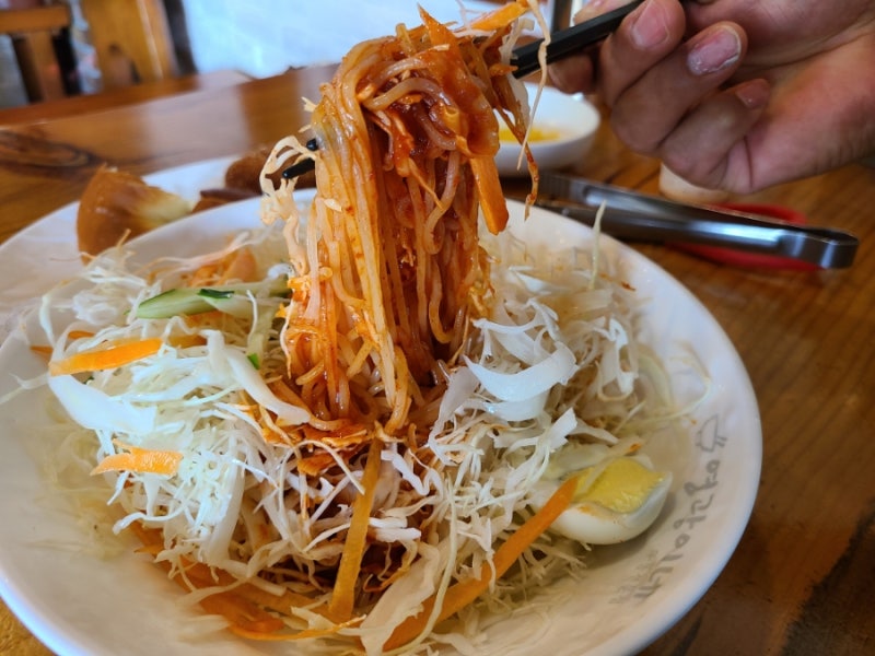 쫄면 양도 많지만 양배추가 잔뜩 들어가서 너무 좋았다.