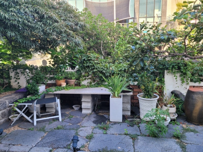 입구에는 아기자기 꾸며놓은 가정집 정원 같은 느낌이다.